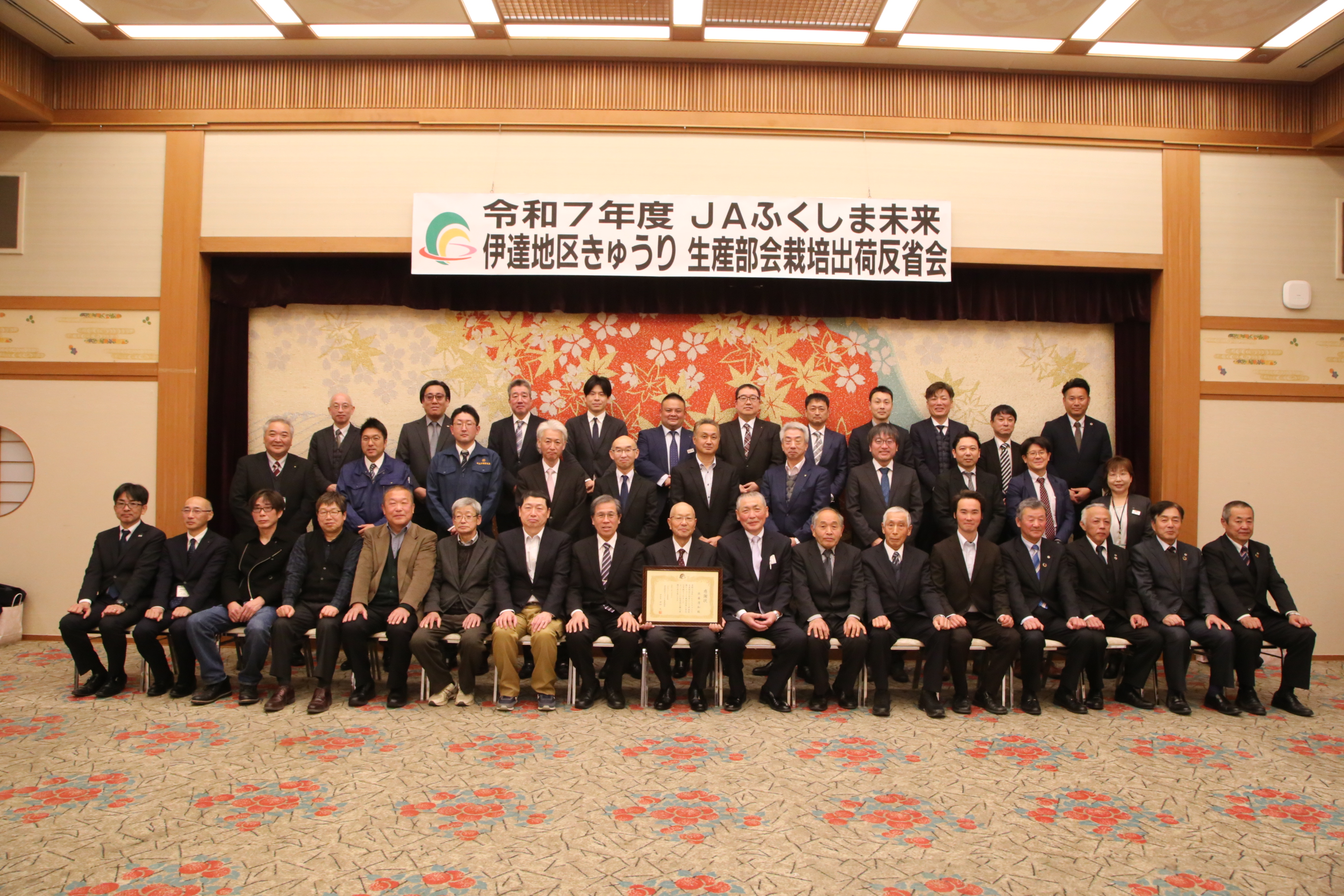 反省会には部会員や市場関係者、関係機関担当者、JA役職員ら約100人が出席。高温対策資材の説明や病害虫対策の徹底も呼びかけられました。市場関係者からは「この暑さの中でも、面積の維持と品質の維持を続けていけば単価を維持できる」と評価の声が上がりました。