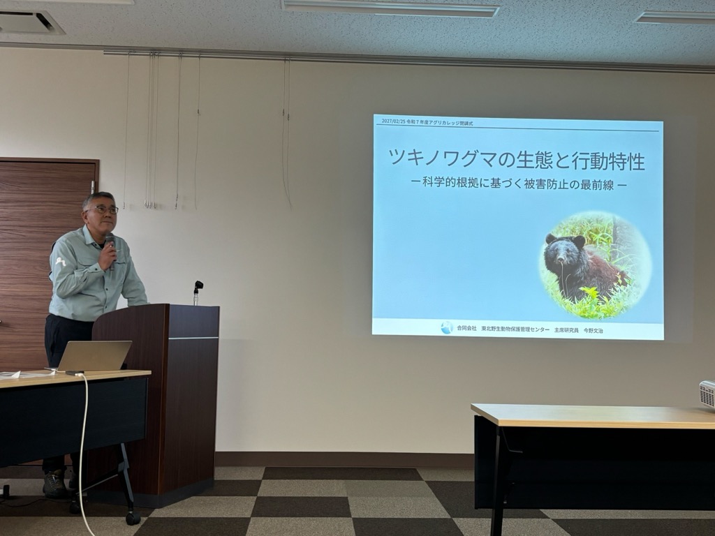 また講演会では、東北野生動物保護管理センター の今野 文治 主席研究員が「ツキノワグマの生態と行動特性について」と題して講演し、野生動物被害の現状や対策について理解を深めました。