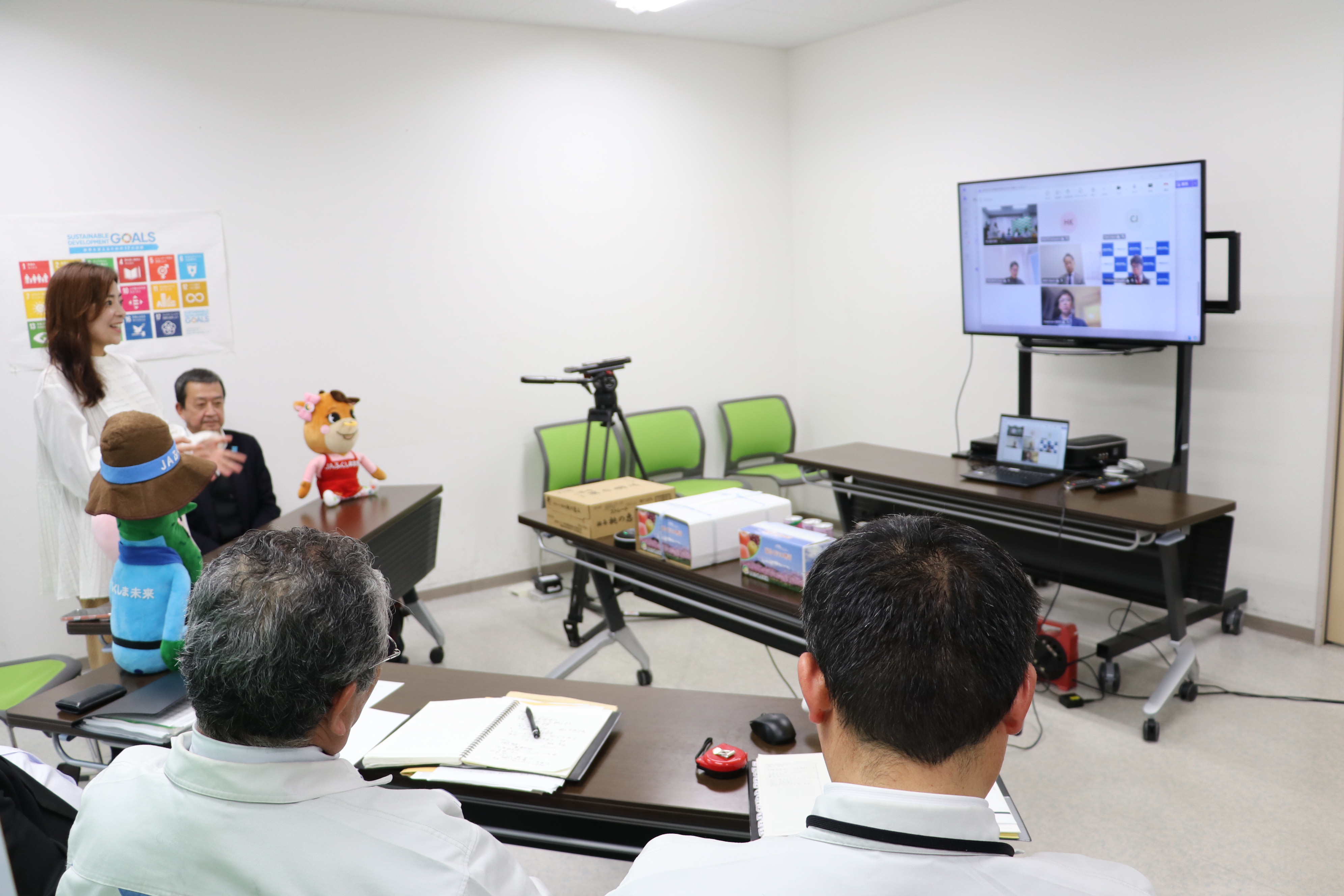 26日、同JAと現地バイヤーとの打ち合わせ会議が行われ、株式会社サクラ・シスターズ代表の峯岸ちひろさんは「福島の美味しいものを台湾の消費者に届けこれからも一緒に発信していきたい」とあいさつ。JAの担当者は「生産者とともに県産農産物の価値向上と持続的な農業振興に取り組む」と意気込んだ。