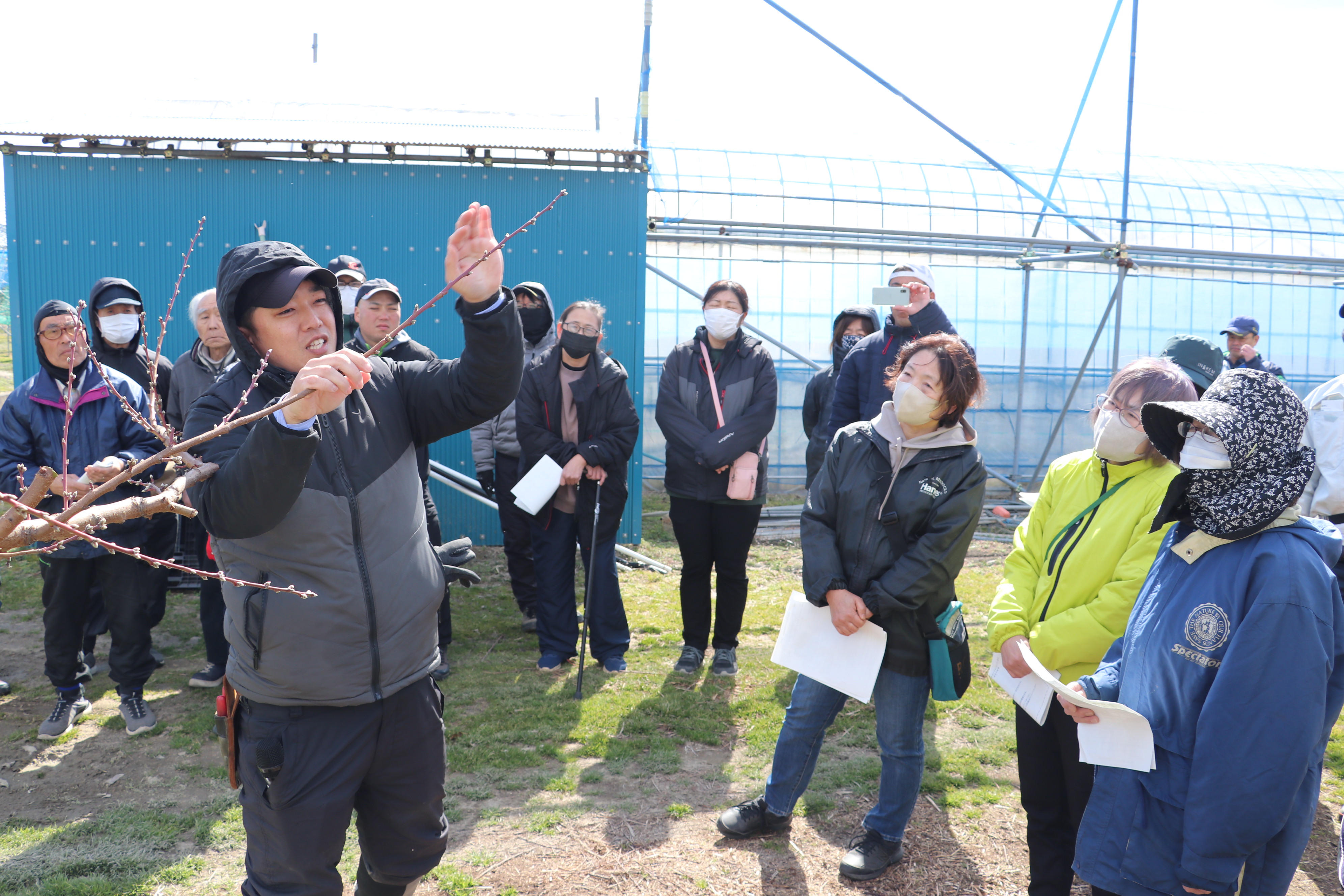 参加者からは栽培管理に関する質問も寄せられ、指導員が一つ一つ丁寧に答えました。藤山係長は「気温や天候によって状況が変わる。スケジュールを立て、計画的に作業してほしい」と呼びかけました。