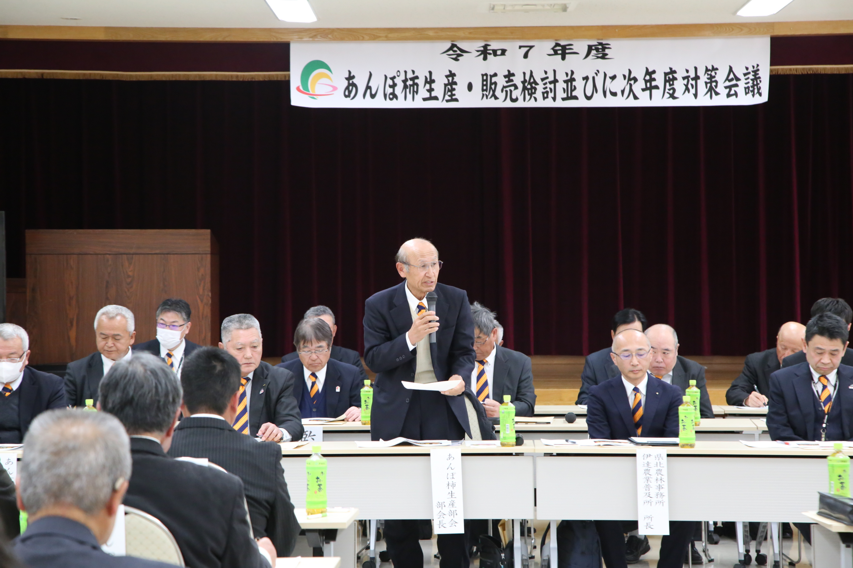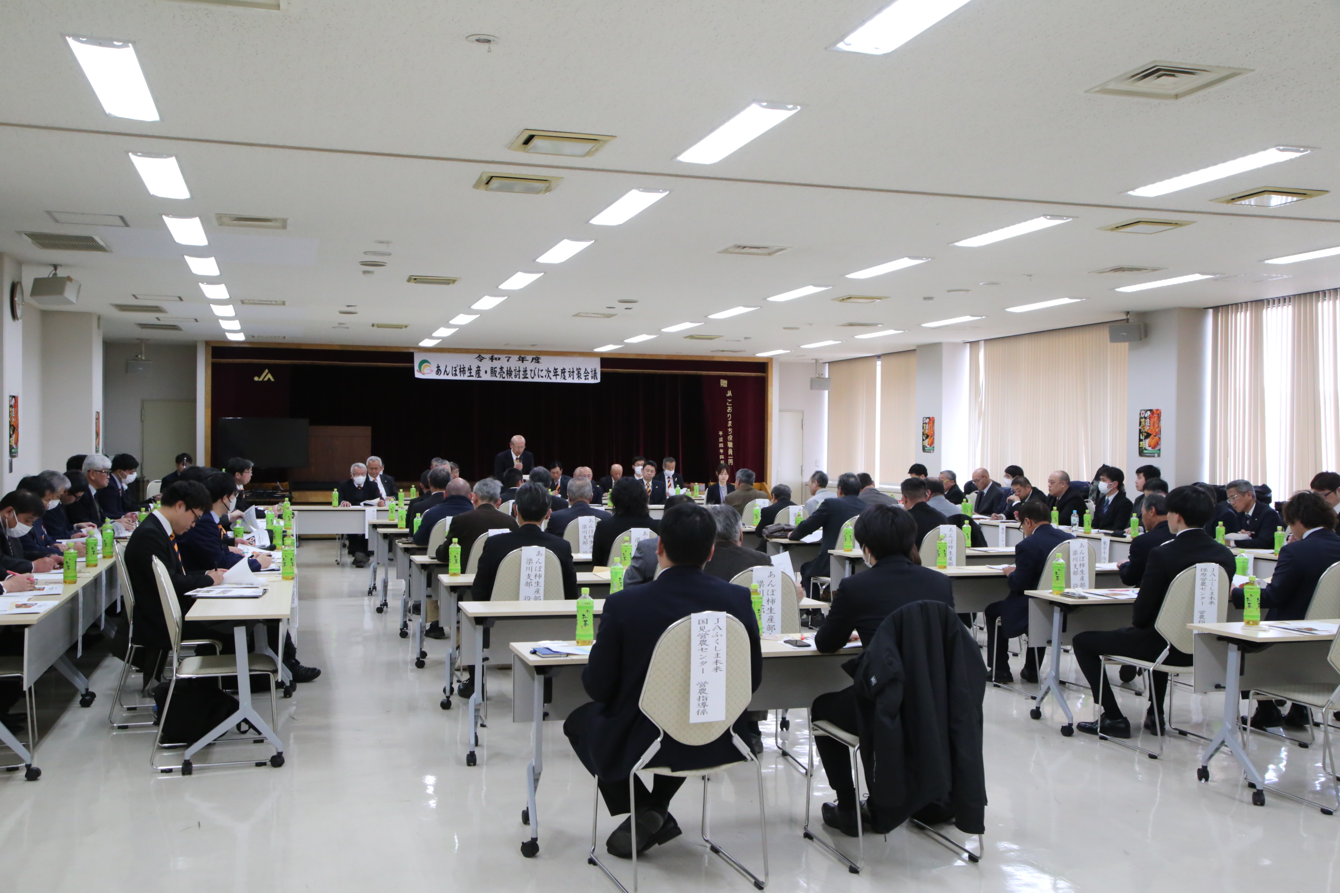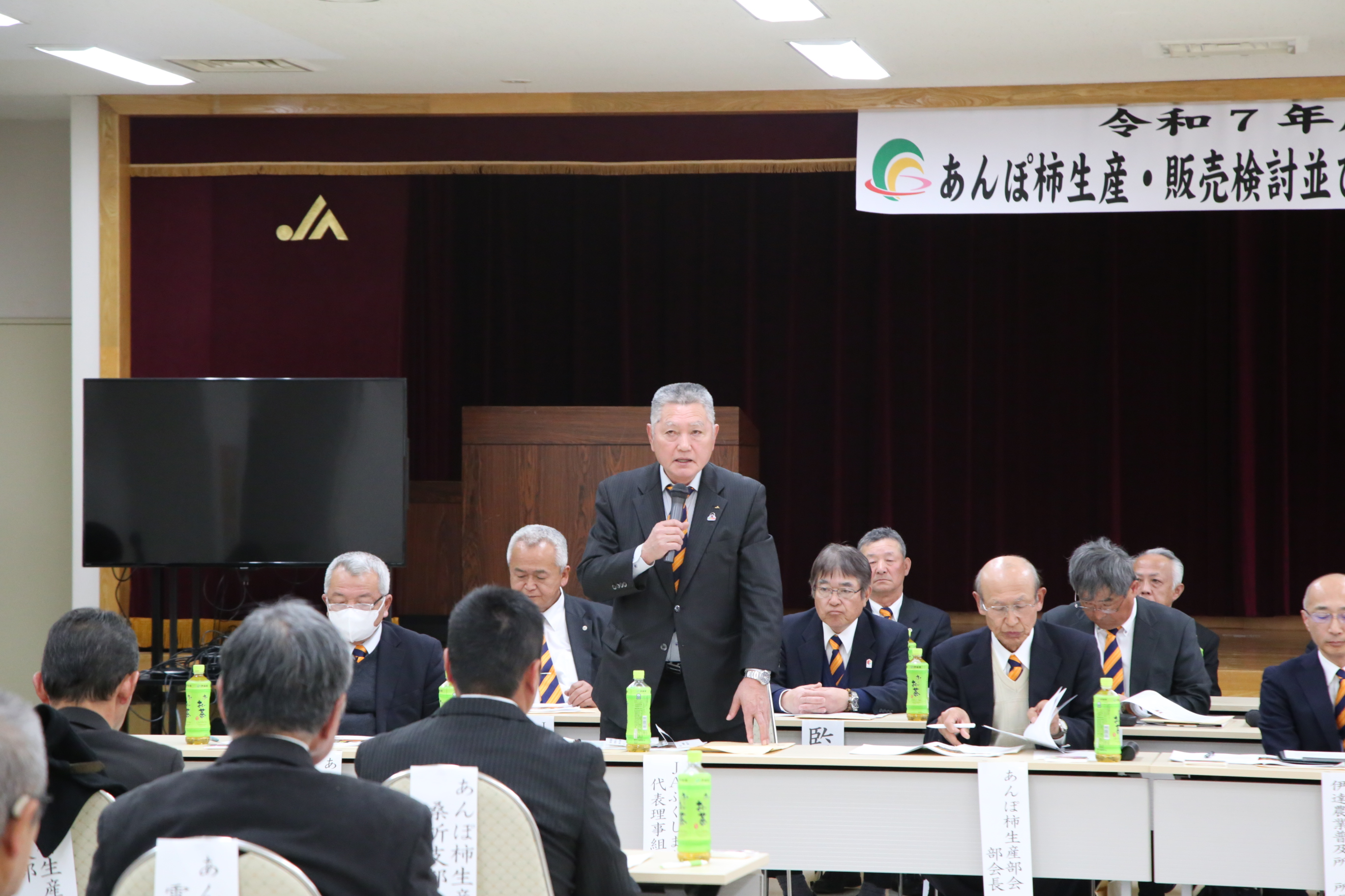 対策会議には部会員や福島県関係者、市場、JA全農福島、JA役職員など約80人が参加し、2026年度に向けた対策を協議しました。佐藤誠部会長は「震災から15年が経ったが、未だに非破壊検査を行っている。加工自粛解除を見据え、産地の発展のために協議していこう」と呼びかけました。