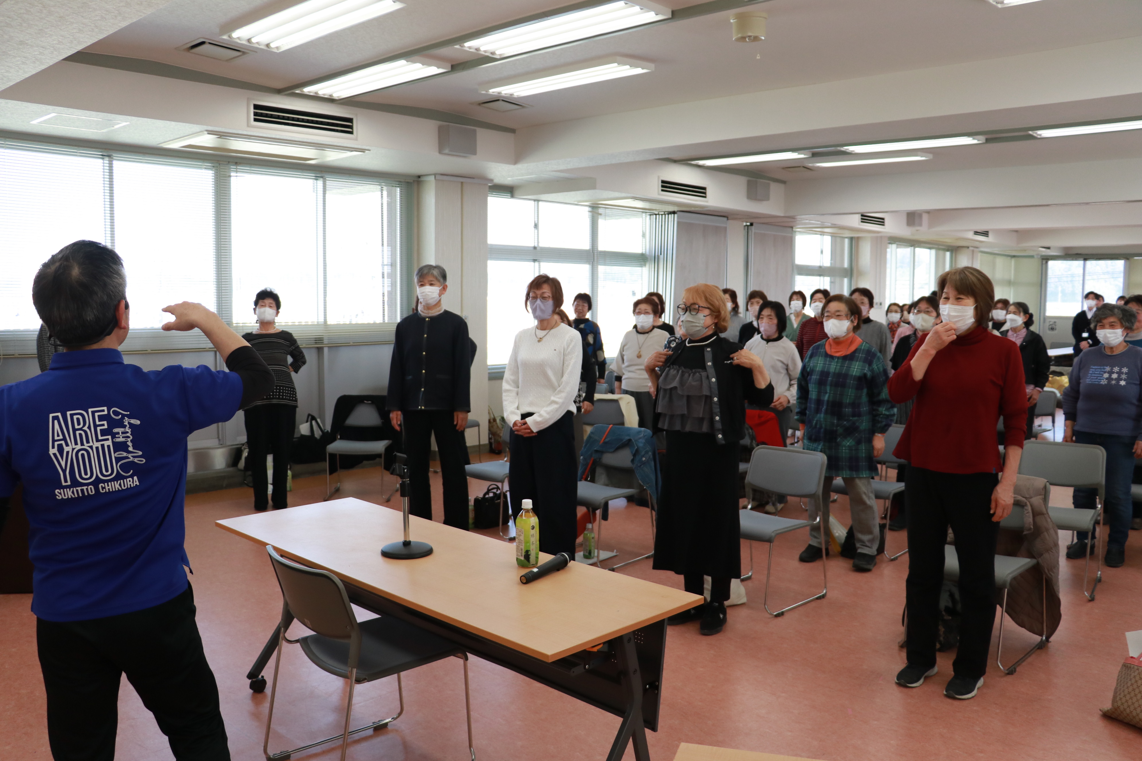 記念講座では、南相馬市の合同会社R.らいず健康運動指導士センター長の塙龍太郎氏が「健康で美しく年を重ねるためには・・・」と題して実技を交えながら指導しました。