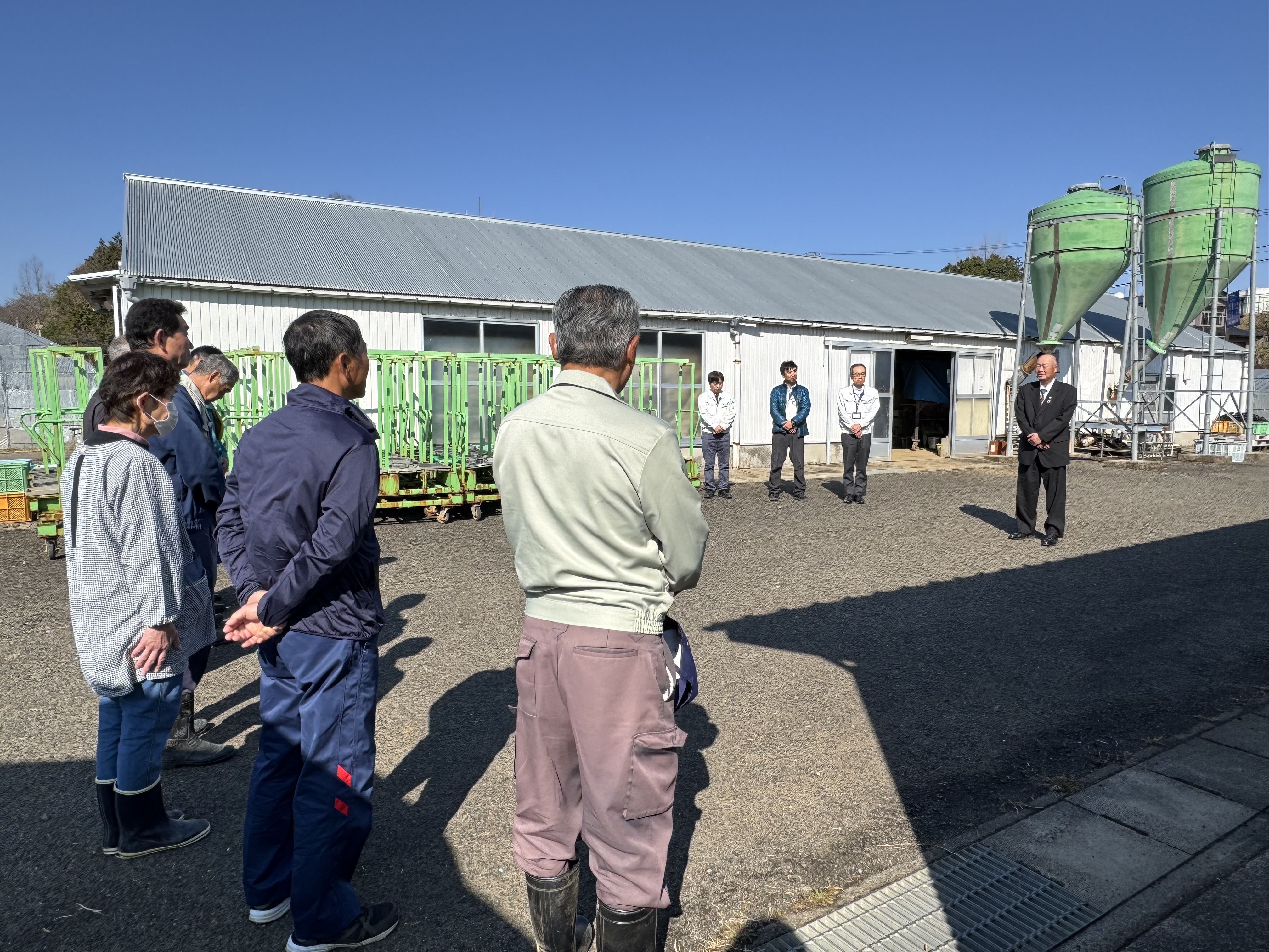 飯野育苗センターで末永喜広福島地区役員代表は「農家の皆さんにすばらしい苗を作りおいしい米を収穫してもらおう」と呼びかけました。