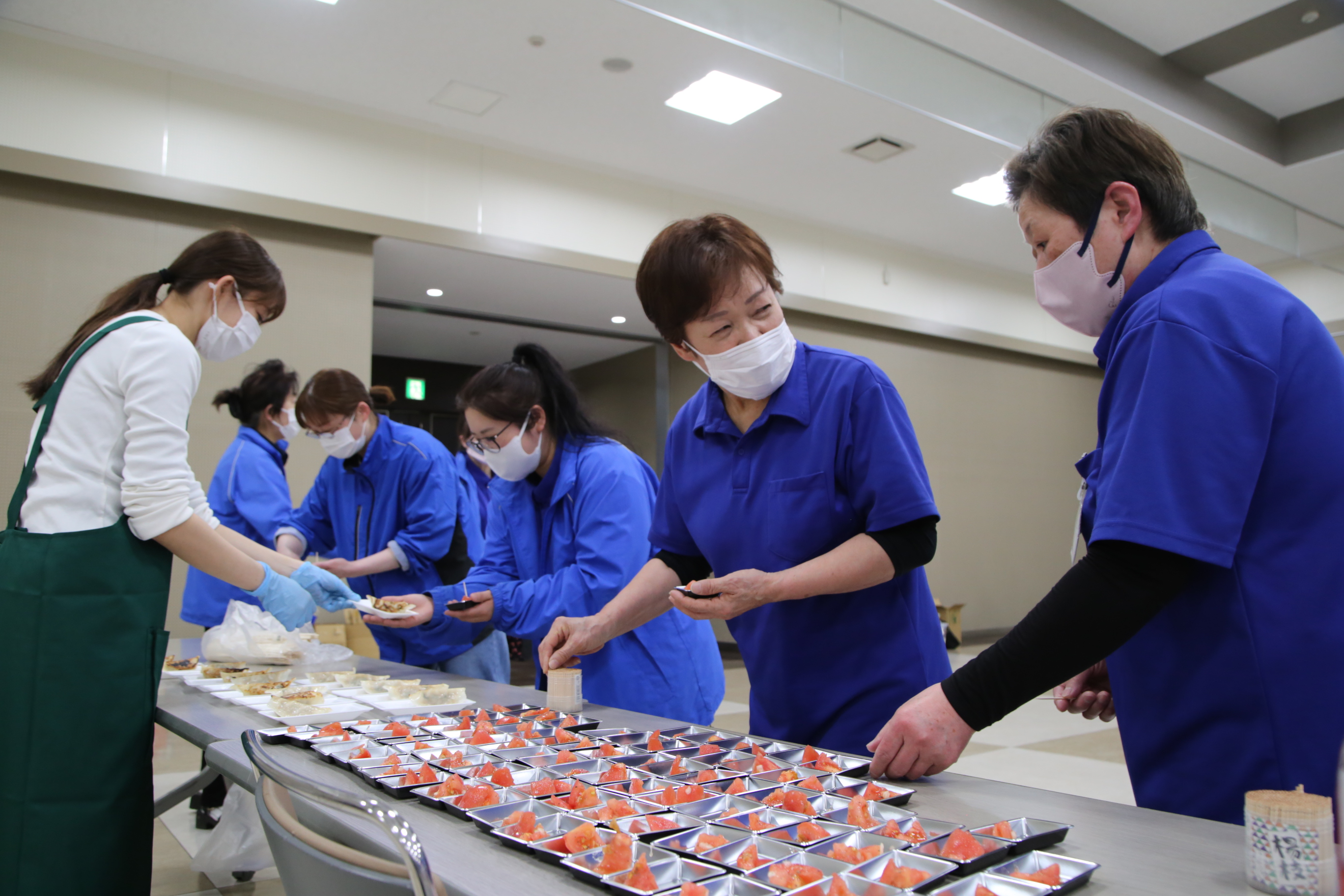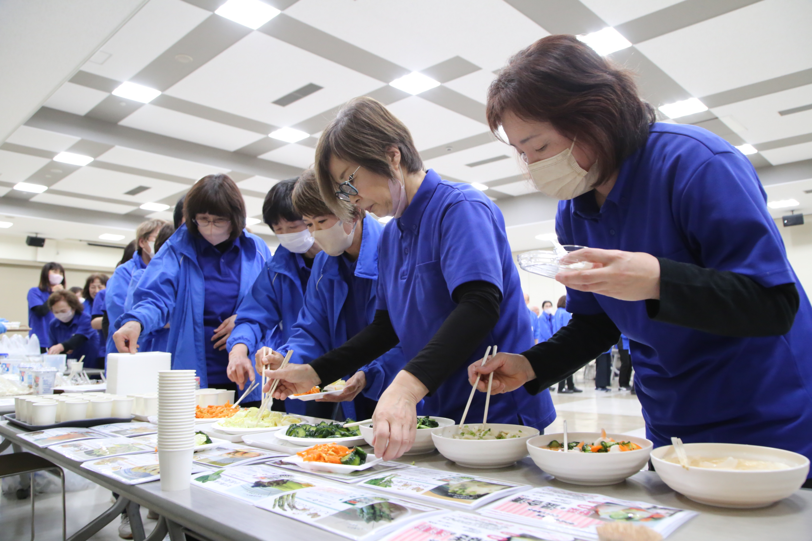 当JAは15日、福島市のアクティ卸町で、福島地区管内で運営する農産物直売所「ここら」の全スタッフを対象とした研修会を開きました。店舗の定休日に合わせ、全店舗のスタッフを集めた全体研修は今回が初めて。当日は約100人が参加しました。