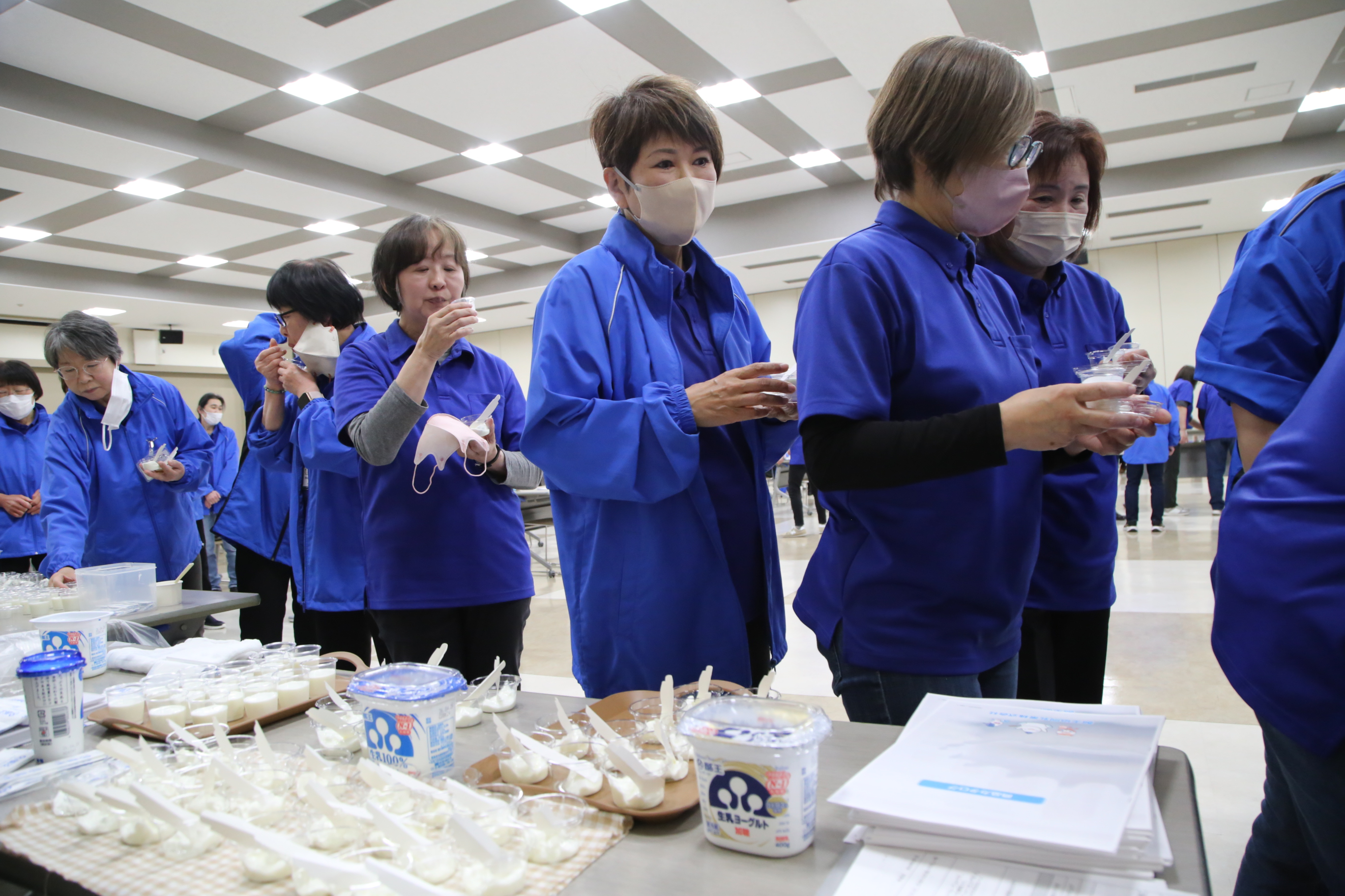 研修の目的は、接客スキルの底上げと、店舗で扱う商品への理解を深めることにあります。当日は、酪王協同乳業、厚生産業、内池醸造、戸田酒店の4社を招き、試食会を実施しました。スタッフは店頭で販売している商品や今後取り扱いを検討している商品の味や特徴を確かめ、販売力の強化につなげる狙いです。