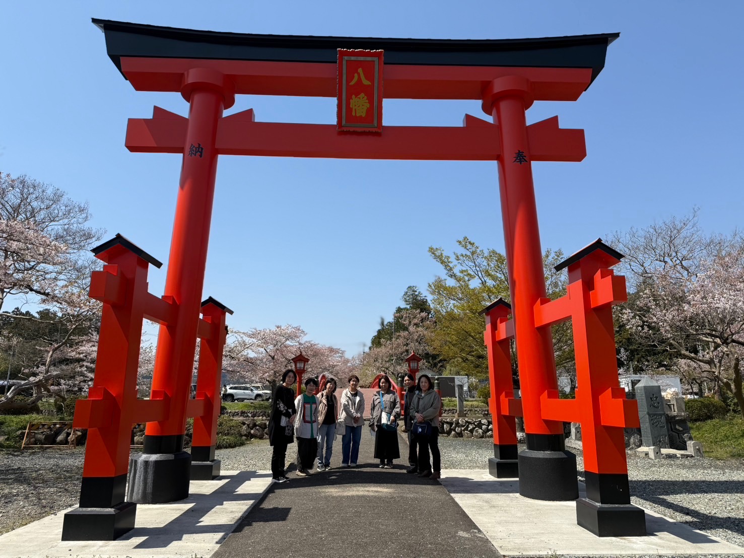 涼ヶ岡八幡神社を見学しその後レストランブロンズにて昼食を楽しみJA農産物直売所と浜の駅松川うらにて買い物をしました。参加者は「天気にも恵まれ交流を楽しめた」と話しました。