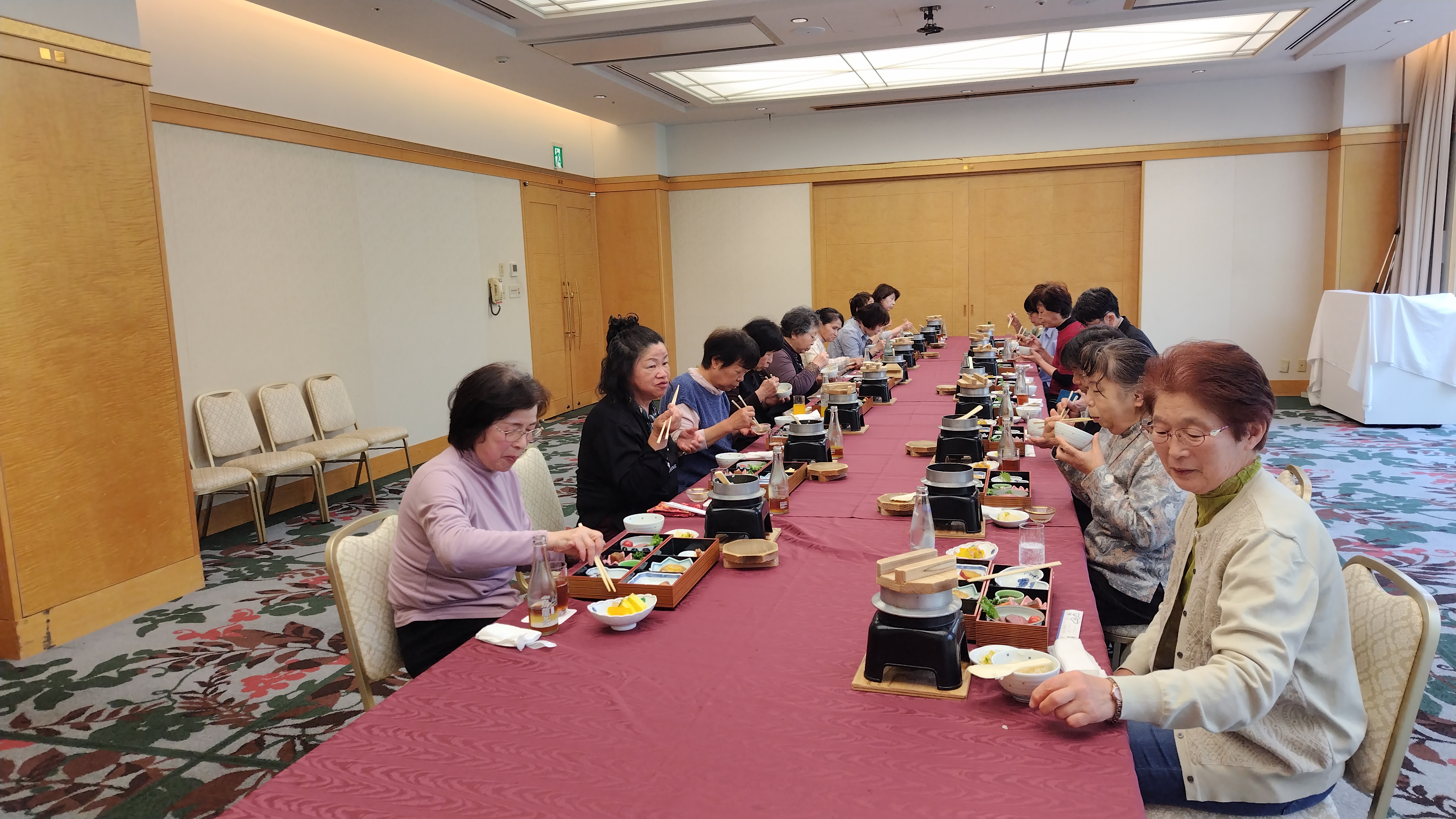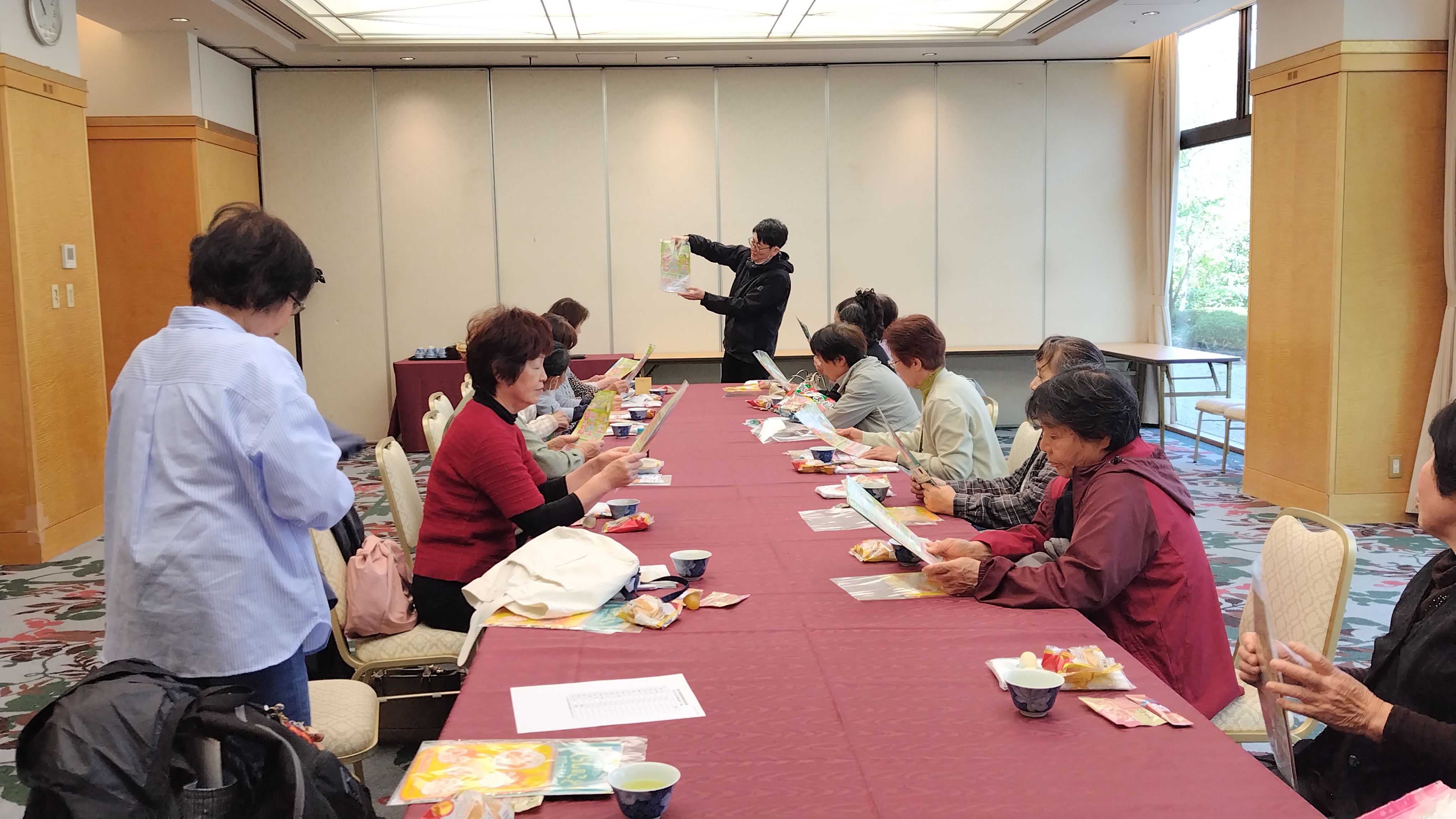 当JA女性部堰本支部は15日、部員研修を行い、部員15人が福島市の飯坂温泉摺上亭大鳥で食事と買い物を楽しみました。MAによる金融共済商品の説明もあり、参加者は熱心に耳を傾けていました。参加した部員は「たくさん笑って楽しかった。来年も参加したい」と話し、楽しい部員同士の交流となりました。