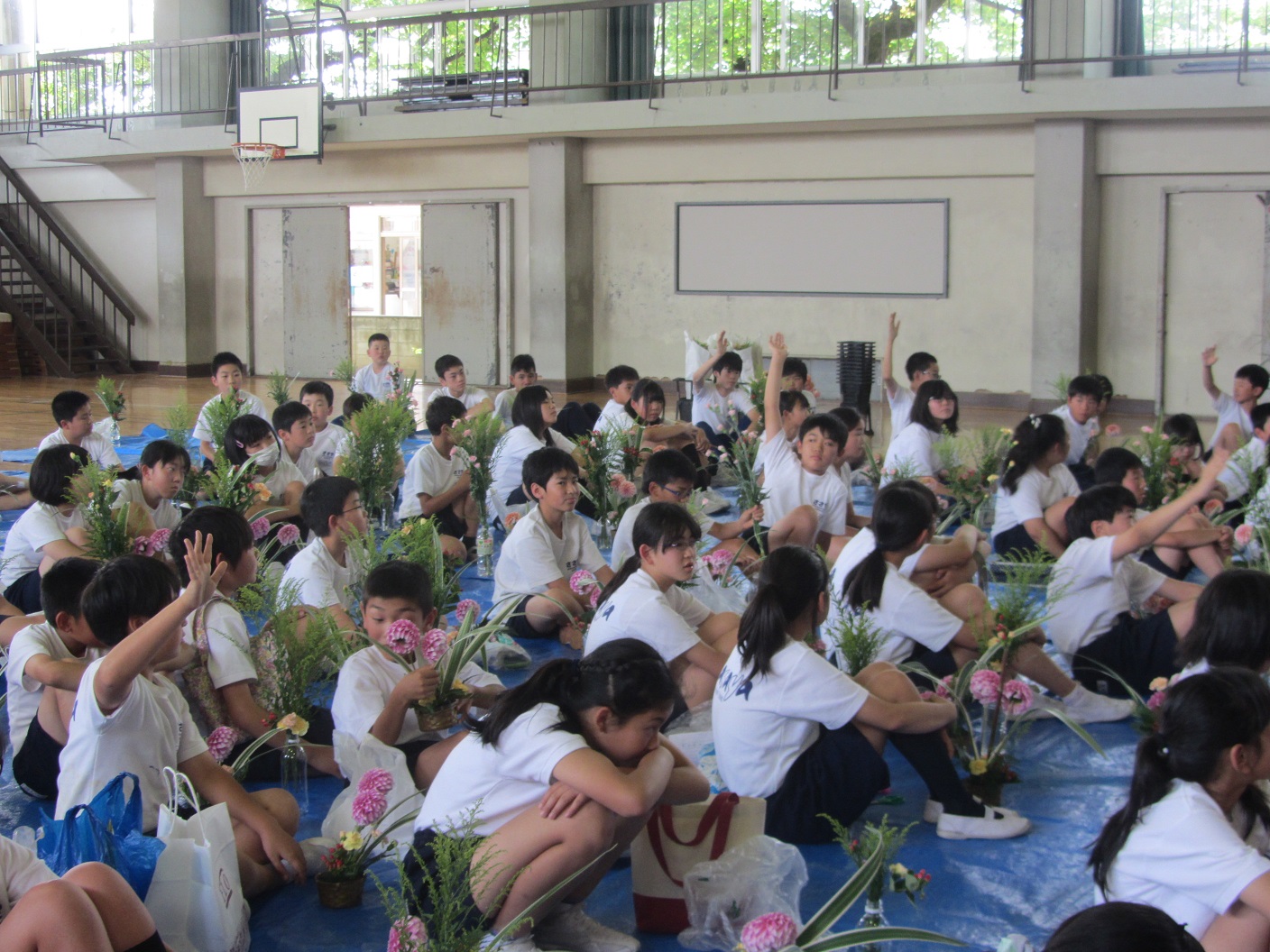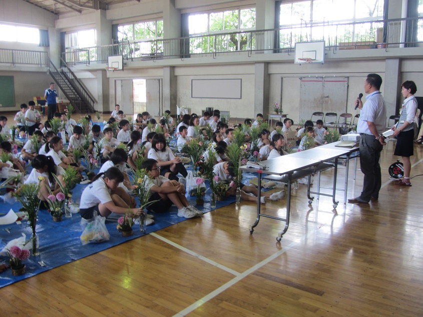 生け花を体験した児童は「自分が思っていたよりもきれいに生けることができて良かった」「思い通りの作品はできなかったが、昔のことを学んで、体験できて良かった」と話していました。同校の校長先生は「みんなが花を生けている姿を見て、私自身もお花で心が洗われた気がします」と嬉しそうに話していました。